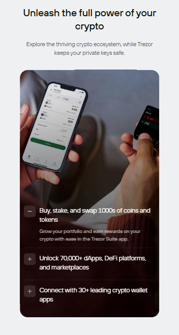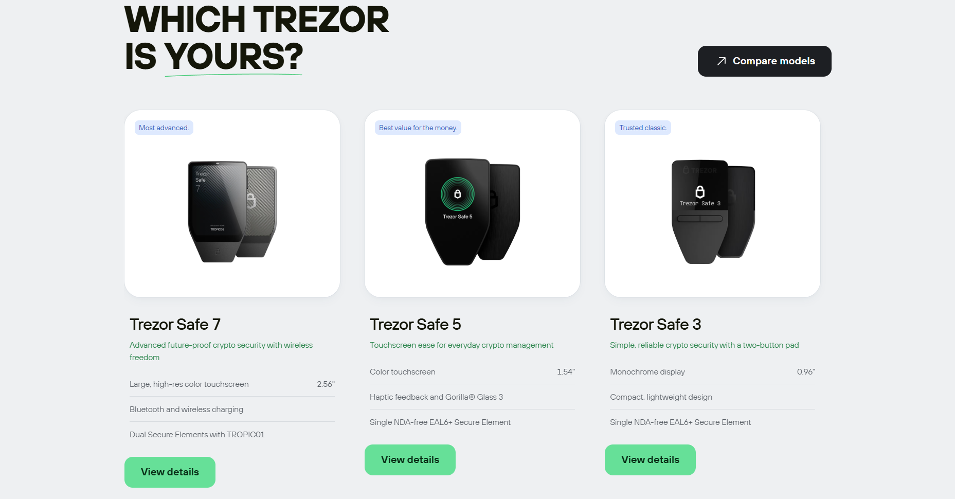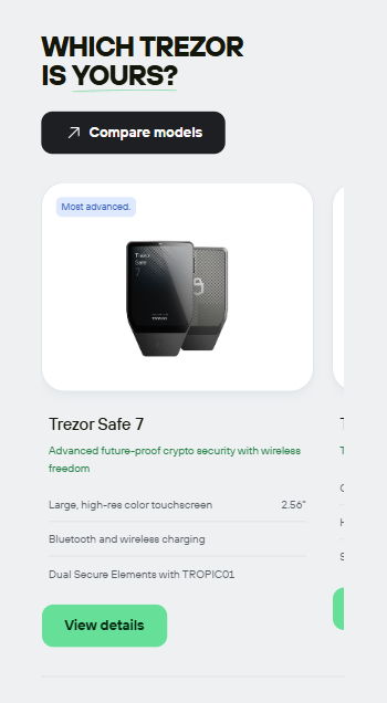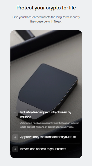 Trezor is built with open-source security, with fully transparent code reviewed by experts around the world. Unlike custodial wallets or exchanges, Trezor offers true offline storage, with offline keys that never leave the device.Features such as optional passwords, phishing protection, community verification, and Tropic01, the world's first transparent and verifiable security element, offer next-generation protection designed specifically for self-custody. Additionally, the new Trezor Safe 7, the first quantum-secured hardware wallet, offers cryptocurrency holders the strongest foundation for secure and independent control of their assets in the future.